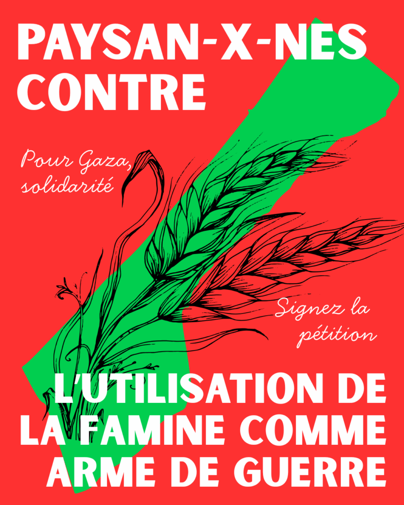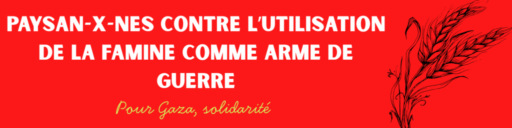 La Via Campesina, mouvement paysan international qui regroupe 200 millions de paysan·ne·s et travailleur/euses agricoles à travers plus de 180 organisations membres, a multiplié les appels pour un cessez-le-feu et un retour des paysan·ne·s gazaouis sur leur terre.